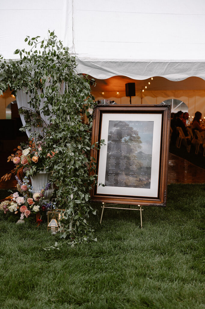 For their wedding day, they knew that transforming the property into a romantic English garden–inspired setting would feel deeply meaningful and incredibly stunning against the property’s natural backdrop. A large white pitched tent anchored the lawn, with greenery climbing the center poles and vines framing the entrance, creating a soft, immersive atmosphere. The ceremony overlooked the river, with a lush floral-lined aisle that seamlessly blended into the natural landscape. The Adela Flora team made sure the arrangements were abundant with roses and other seasonal blooms, drawing inspiration from the bold tones and modern compositions of a lush English garden.