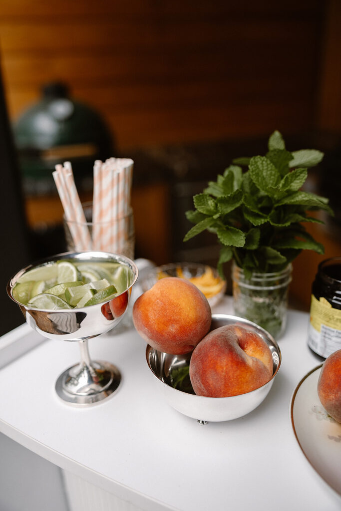 Personal details elevated the design, including the bride’s curated of antiques woven throughout the décor, a seasonal color palette that complemented the surrounding environment, and the incorporation of Palisade peaches —adding a distinctly Colorado, late-summer touch that felt both elegant and personal. Their backyard will forever be reimagined as their english garden inspired wedding!